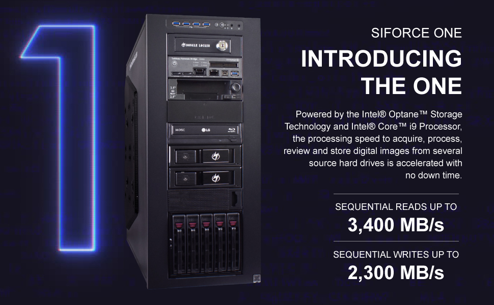 SiForce One is a powerful workstation optimized using OpenText’s recommended configuration for the EnCase digital forensics software. It is for everyday use by investigators to acquire digital forensics images, and to process, review, and store data. A key feature of this system is its hot-pluggable and write-protected hard drive enclosure which provides investigators the ability to acquire digital images from several source hard drives without the need for down time to swap drives. The destination drive bay is also hot-swappable, enabling the investigator to use several drives for larger images without having to shut down the system. Additional trays are supplied to accommodate either IDE drives, SATA drives, or laptop drives. SiForce One is the most flexible forensic system in the market.